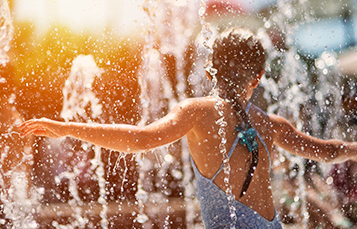 Young adventurers love to frolic around cascading fountains and crawl through a mix of water-spraying mazes, especially in hot weather.